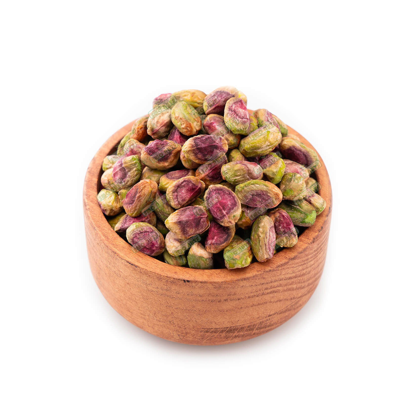 Shape & Texture: Oval/round jumbo shape, natural open shell, green kernel, soft-crunchy texture